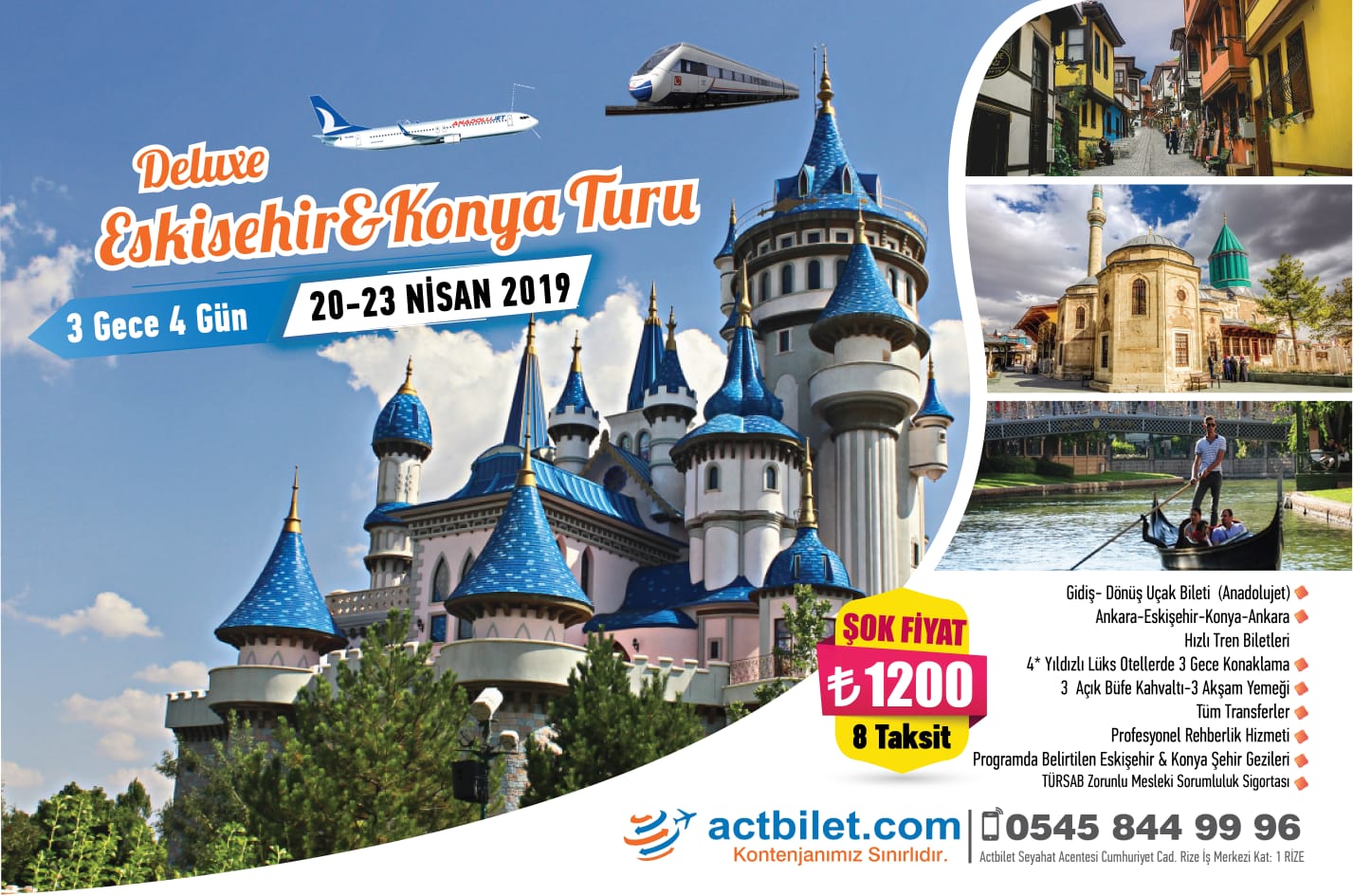 Sabah saat 06:30’da  Havaş otobüsü ile  Rize’den  Trabzon Havalimanı’na hareket. Bilet ve bagaj işlemlerinin ardından, Türk Hava Yolları’nın TK7069 sefer sayılı uçağı ( Anadolujet) ile saat 08:45’te  Ankara’ya uçuş. 1 saatlik bir uçuşumuzun ardından Ankara Esenboğa Havalimanı’na indikten ve bagajlarımızı aldıktan sonra, bizi bekleyen özel otobüsümüzle Ankara Tren Garı’na hareket ediyoruz. Gara varışımızdan sonra hızlı trene binip saat 11:40’ta Ankara’dan Eskişehir’e hareket ediyoruz. 1 saat 25 dakikalık bir hızlı tren yolcuğu sonrasında , ülke turizminin son yıllardaki yükselen değerlerinden Eskişehir’e vardığımızda, önce bir restoranda öğle yemeğimizi alıyoruz. Yemekten  sonra rehberimiz eşliğinde şehir turumuza başlıyoruz. İlk olarak , Tülomsaş’ın  ( Türkiye Lokomotif ve Motor Sanayi A.Ş.) bahçesinde sergilenen , 1961 yılında Cumhurbaşkanı Cemal Gürsel’in talimatlarıyla 4,5 ayda üretilen ,Türkiye’nin ilk ve tek yerli otomobili Devrim’i  ziyaret ediyoruz. Ardından , Eskişehir’in en eski yerleşim merkezi olan ve UNESCO Dünya Kültür Mirası Geçici Listesi’ne alınan , Evliya Çelebi’nin de içerisinde bulunduğu pek çok gezgin tarafından övgüyle bahsedilen;  Selçuklu, Osmanlı ve Cumhuriyet dönemine ait bir çok tarihi yapının bulunduğu , Eskişehir Ovası’na hakim bir noktada yer alan Odunpazarı semtine gidiyoruz. “Tarihi ve Kentsel Sit” olarak koruma altına alınmış olan , kıvrımlı yolları, çıkmaz sokakları , ahşap süslemeli –bitişik düzenli-cumbalı evleri ile örf , adet ve geleneklerimizi koruyarak Anadolu Türk Mimarisi örneklerini günümüze kadar taşıyan , her sokağı ayrı bir atmosfere sahip  Odunpazarı Evleri arasında gezerken, adeta tarih içinde bir yolculuğa çıkmış gibi hissedeceksiniz. Ayrıca bu bölgede, Kanuni Sultan Süleyman’ın vezirlerinden Çoban Mustafa Paşa tarafından 1525 yılında yaptırılan Kurşunlu Camii ve Küllliyesi , Lületaşı Müzesi,  yaklaşık 200 adet heykelin sergilendiği  Eskişehir Balmumu Müzesi, hediyelik eşya alışverişi konusunda çok fazla seçeneğin bulunduğu Atlıhan El Sanatları Çarşısı , Eskişehir Cam Sanatları Atölyesi  ve ardından Eskişehir’in en güzel ve popüler parklarından bir tanesi olan Türkiye’nin ilk yapay plajının bulunduğu  Kentpark gezip göreceğimiz yerler arasındadır. Gezi sonrası otele transfer ve otelde akşam yemeği. Konaklama: The Merlot Hotel **** Eskişehir