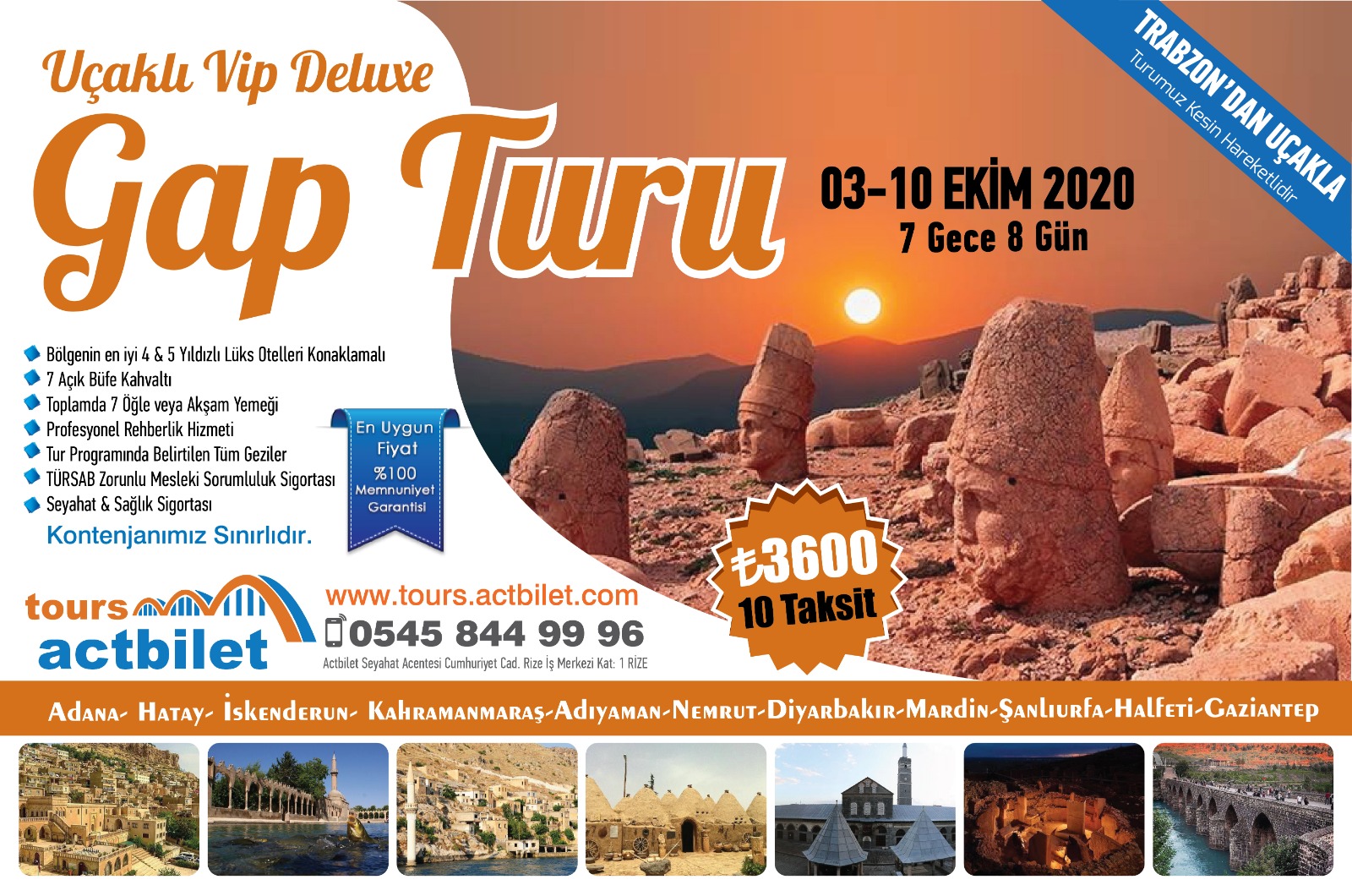 Not: Gap turumuza Adana başlangıçlı ve Gaziantep bitişli olmak koşuluyla Türkiye’nin her yerinden uçak bileti hariç katılım ücreti 3100 TL’dir.